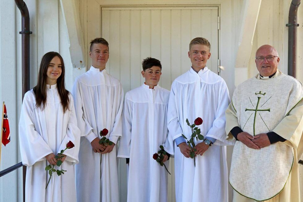 Endelig ble det tid for konfirmasjon, og med sol og godvær fikk de fire konfirmantene i Løvøy kirke den beste rammen rundt dagen.