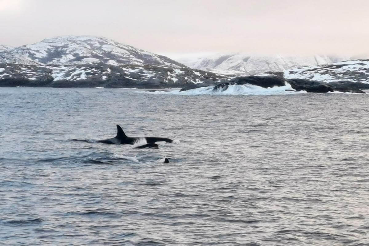 Han observerte dem klokka 09.15. Spekkhoggere er de største i delfinfamilien, og kan bli 7-9 meter lange og veie mellom fem og ti tonn.