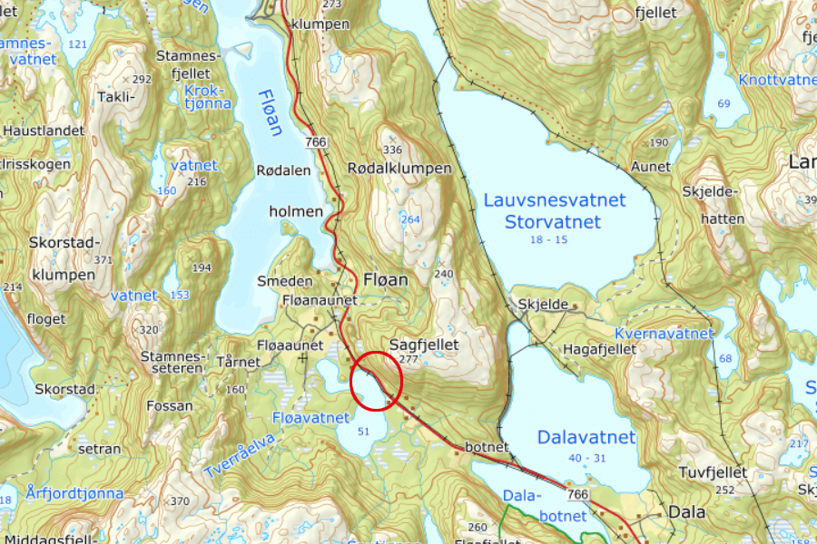 Brøytebil i grøfta ved Fløanvatnet