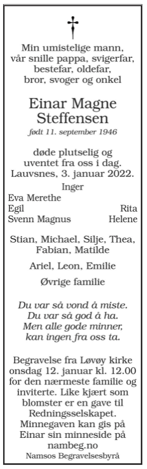 Einar Magne Steffensen ...Publisert: 5. januar 2022 kl. 09:17Oppdatert: 19. februar 2026 kl. 11:00 Obs! Artikkelen er mer enn ett år gammel. Del på Facebook Del på X Du vil kanskje også lese Ingen relaterte artikler.