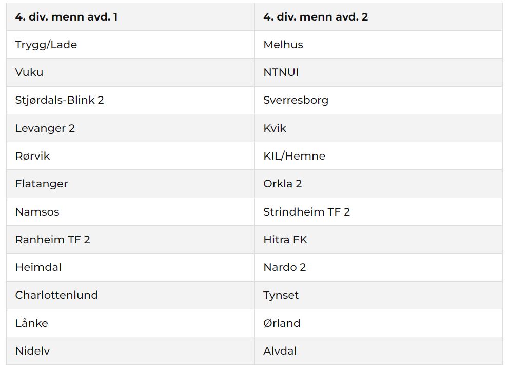 Slik er lagene fordelt mellom avdeling 1 og 2 i 4.divisjon kommende sesong: