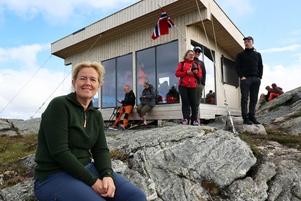 Beate Ramberg Myren fikk en vill idé. Det hadde vært artig å bygge noe på toppen av Utvordfjellet! Lørdag var det offisiell åpning av utsiktshytta, og rundt 100 personer tok turen opp til Flatangers nye attraksjon – til fots eller med helikopter.