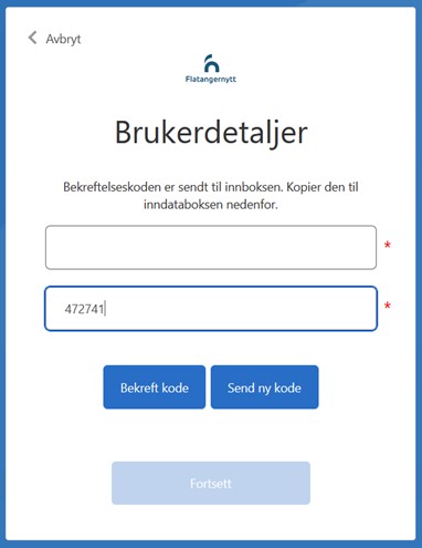 7. Eposten er nå bekreftet. Trykk på «Fortsett»