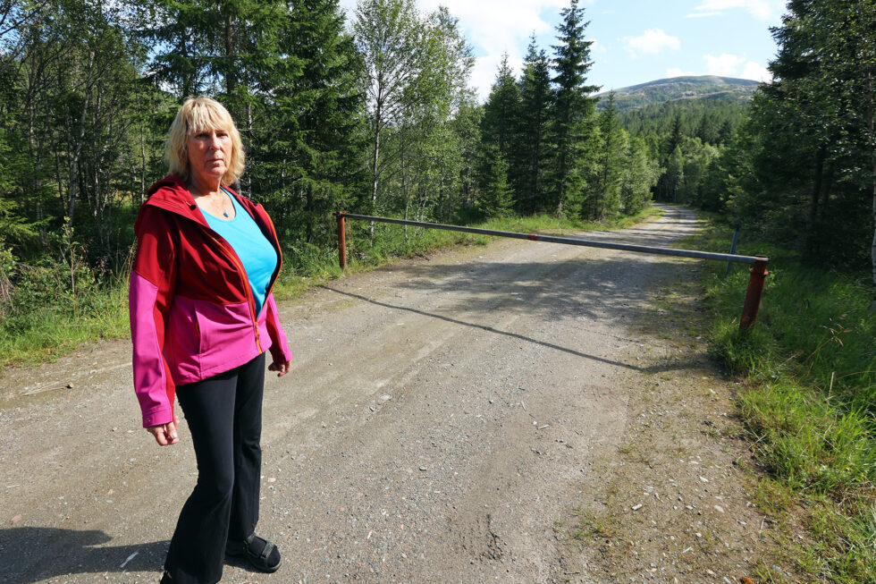 Kari Olsen har i alle år kjørt skogsbilveien til Eldbyggskardet for å plukke molt. Men i år er veien låst med bom. – Ergerlig, synes hun.