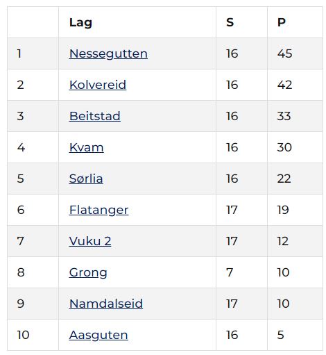 Slik er tabellen akkurat nå: