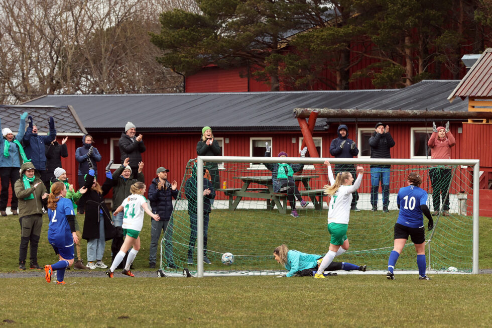 – Det er jo artig at det kommer så mange. Det er med på å gire oss opp, sier kaptein Hilde Camilla Lænd på Flatangers 7er-lag, som fikk oppleve alle de fire årstidene i en og samme kamp, med regn, sludd, snø – og sol.