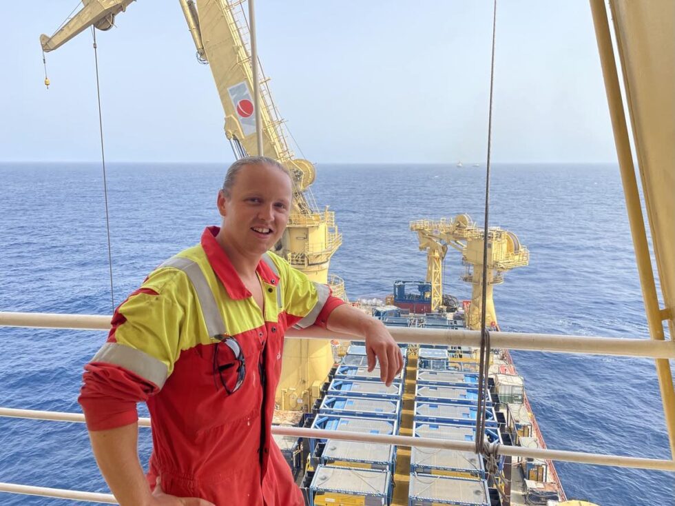 – Høgskulen har avtalar med ulike reiarlag, fortel Didrik. Han mønstra på til reiarlaget Solstad Shipping AS i Belgia for deretter å vere med og føre den 142, 6 meter lange arbeidsbåten til kysten av Vest-Afrika. Her har dei arbeidsdagane sine utanfor kysten av Senegal og Mauritania der dei arbeider med ferdigstilling av eit nytt LNG-felt.