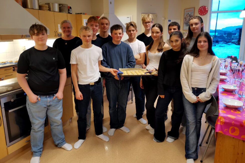 Hver tår baker 9. klasse ved Lauvsnes skole julebrød for besøkstjenesten i Flatanger menighet og Røde Kors – så også i år!