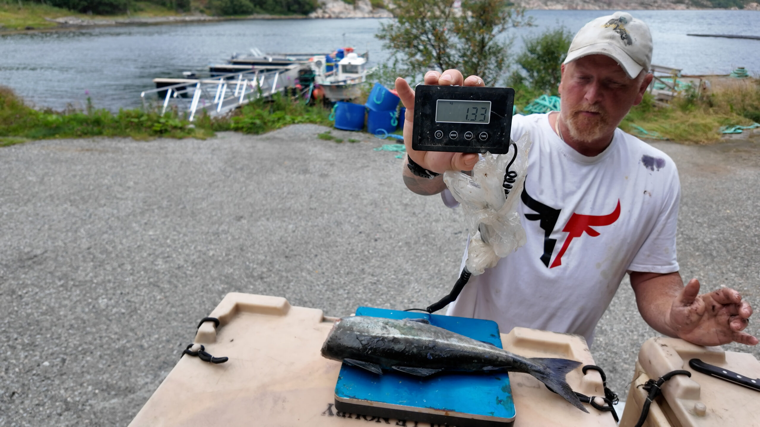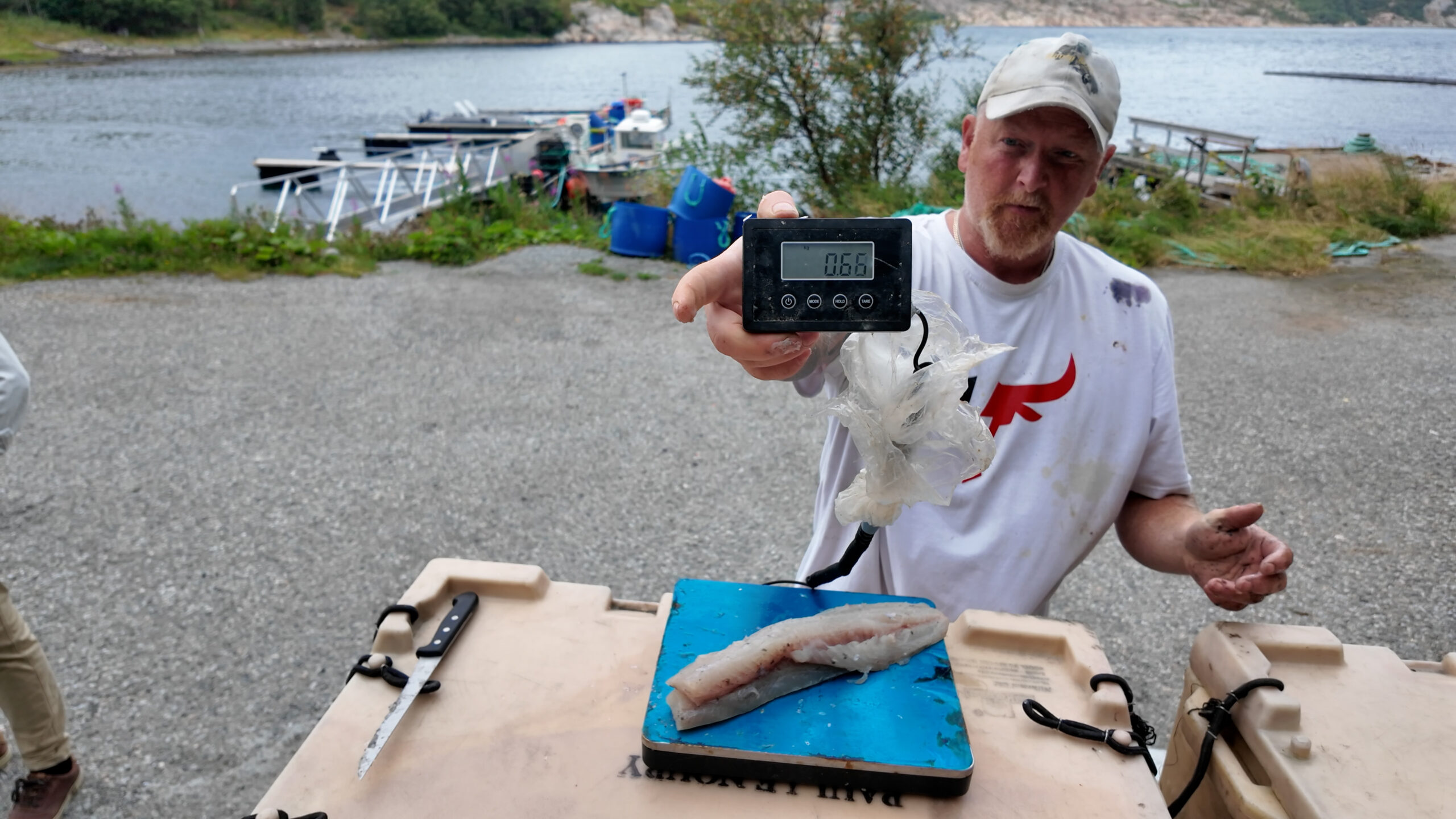 – Dette er 1,33 kilo sei slik vi veier den profesjonelt – uten hode og innmat.