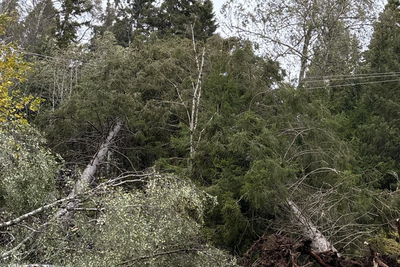 Alt av meldinger om strømbrudd har skyldes trær som har falt over linjene eller stolper som har blåst ned.