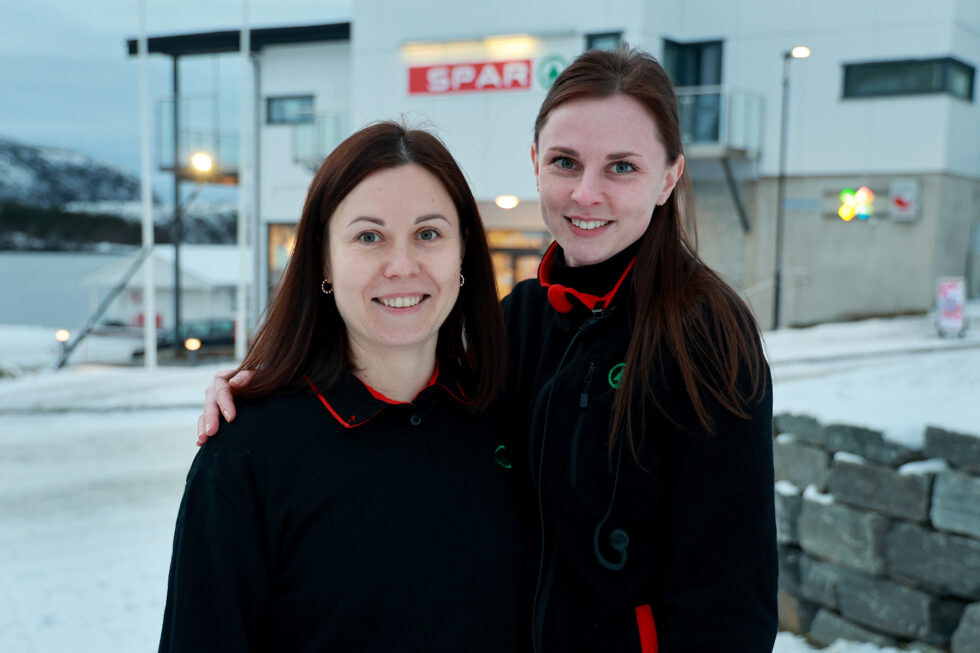 Kateryna og Katja er kjempeglade for å ha fått fast jobb på Spar, noe som ikke var en selvfølge. Katja kunne verken norsk eller engelsk da hun kom til Flatanger.