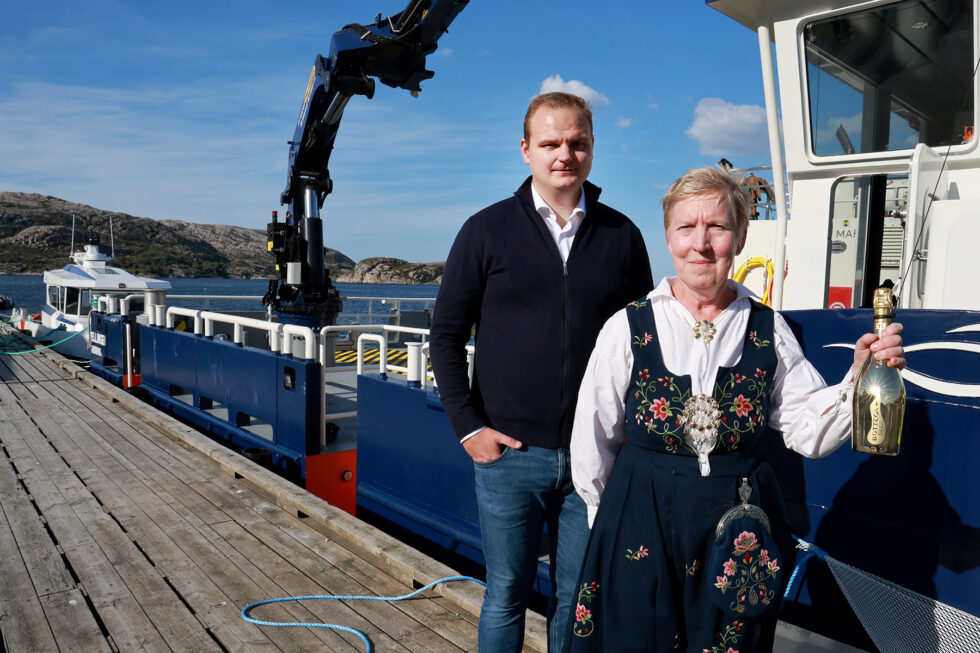 Viktor Meland var gudfar og Solveig Løfsnæs Sivertsen gudmor da Bjørøyas to nyeste båter ble døpt på Bessaker onsdag.