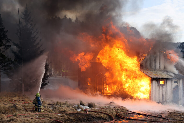 Brannøvelse på et eldre våningshus