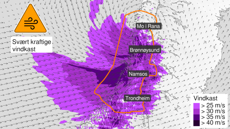 Målte vindkast på 43,9 m/sek