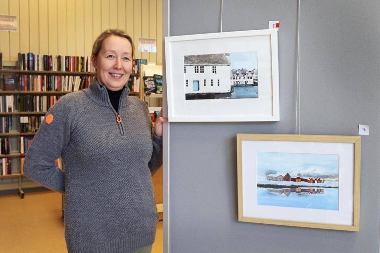 Stiller ut egne bilder på biblioteket