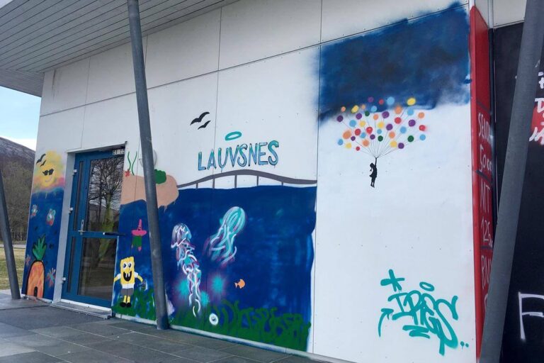 Fargerik gatekunst i Flatanger