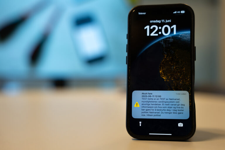 Nødvarsel på mobil klokka 12