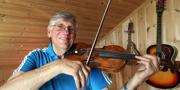 Arne Penna og resten av komiteén inviterer til det som trolig blir det siste Klas Bøle-treffet. Her viser Penna fram Bøles fiolin som ble reddet fra brann i siste liten for mange år tilbake. (Foto: Ove Magne Ribsskog)